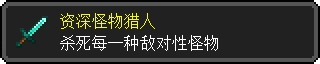 挑战类型的成就,需要杀死过原版34种敌对性生物。属于游戏后期耗时长,但挑战性极高的成就。