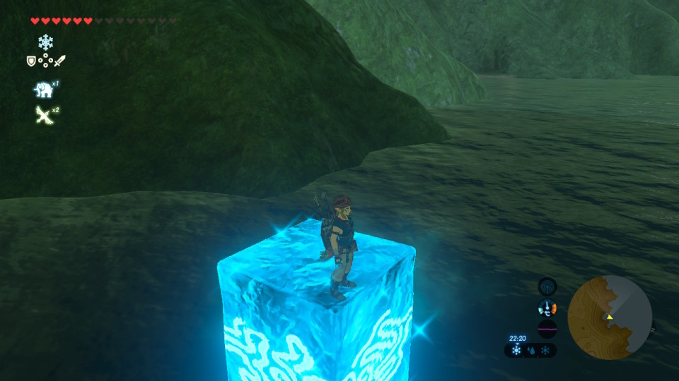 ②地形要求:站点较为陡峭且较高。需要多陡多高?持盾状态下向前跳跃并且按下拉弓键,此时能进入林克状态即可。虽然有的地形可以进入林克时间,但是进入时间和持续时间较短,所以越陡越高越好