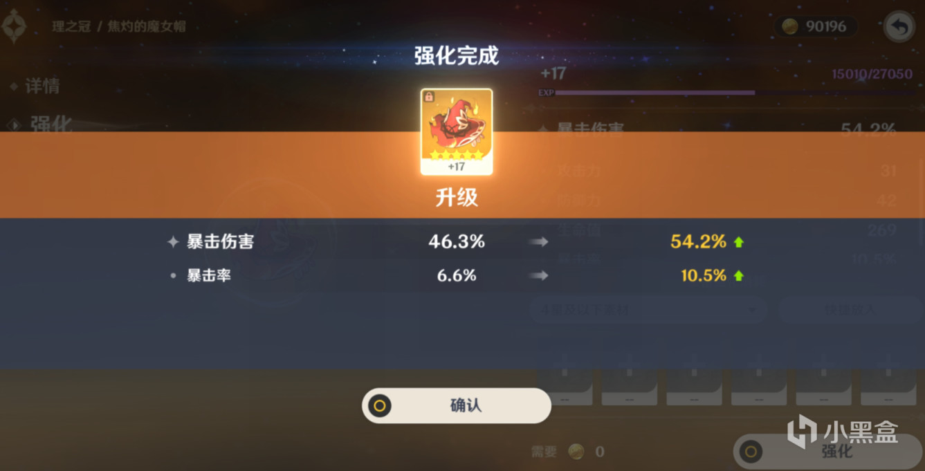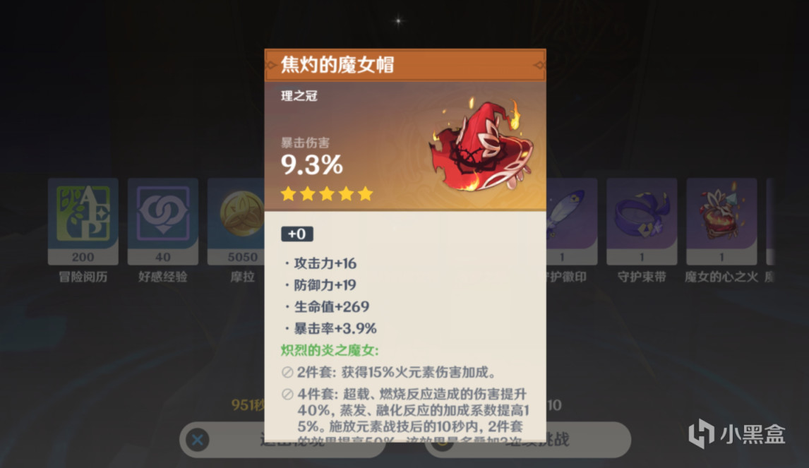 假设为世界7,秘境必掉金色圣遗物,为了方面描述,冻梨选择了痛苦的火本。众所周知,20树脂有50%的概率掉落魔女套,而对应掉落为理之冠的概率为五分之一。其中理之冠的主属性有7种:生命值、攻击、防御、精通、暴击率、暴伤、治疗,因此我单纯想要一个暴伤魔女头,20树脂掉落概率为1.4%,有点儿真实。