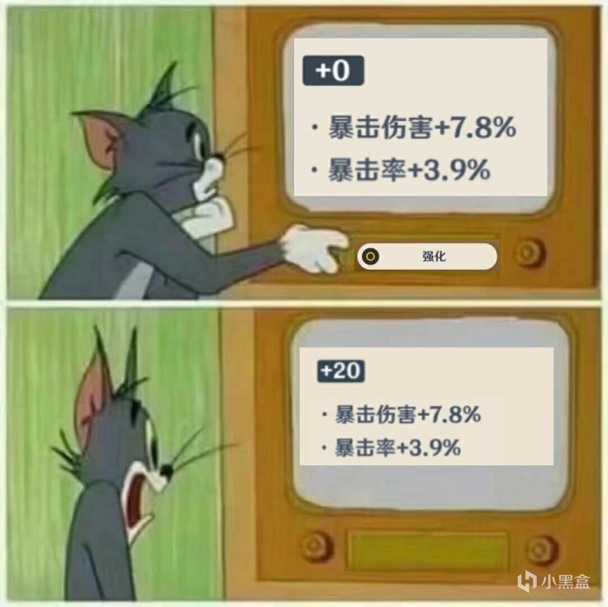 现在咱们要开始强化啦!此时,每次强化只有25%的概率强化到暴击率身上,而每次强化增加的数值同样分了4个档位,金色圣遗物的副词条一共可以提升5次。不管其他,只论极限23.4%暴击率,强化出来的概率为0.000095%,看起来已经很离谱了。