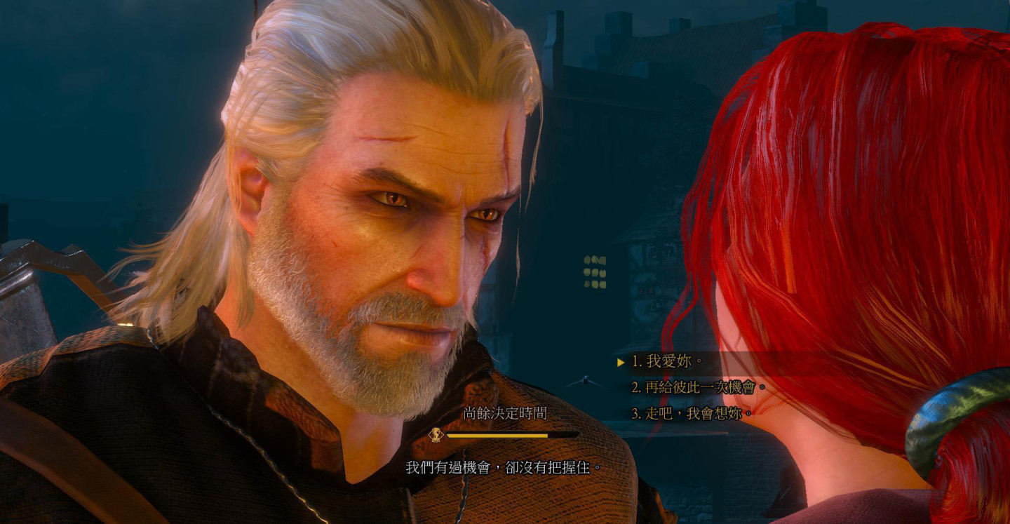 在游戏的最后,杰洛特的记忆终于慢慢恢复,他不得不与特莉丝分手,踏上寻找挚爱叶奈法的旅途。
