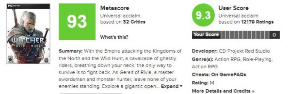 《巫师3》的优秀不用过多赘述,IGN、Game Spot 等游戏测评机构纷纷给出高分甚至满分,玩家们对这款产品更是毫不吝啬赞美之词,甚至可以说,《巫师3》是近十年来最优秀的角色扮演游戏。
