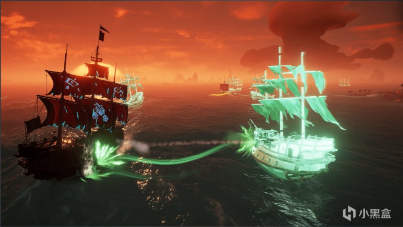 在一张大地图上,存在若干艘玩家船,不论船的量级,有可能就你一艘单帆而人家都是三帆的可能,大家“公平”的在海上竞争,因为大地图上资源是有限的,像那种世界事件,所有人都可以平等的看到,因此各种复杂情况的战局也就会根据情况应运而生。就算你是三帆船也有可能在刷完要塞之后被一艘单帆船伏击而竹篮打水一场空,当然你也可以跟陌生人结盟一起纵横大海,这些事可以说天天都有在发生,玩家在海域中所有行为都被视为合理,不像一些游戏中,攻击玩家的行为会导致该玩家红名,也正因为如此,《盗贼之海》才能够称之为盗贼之海,海盗才可以在这个游戏中被描绘的淋漓尽致,成为我心目中最棒的海盗扮演游戏,并乐此不疲,笔者也是老坏蛋了!
