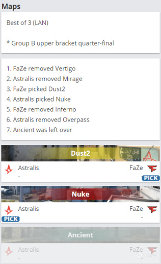 地图BP(FaZe选择Dust2,Astralis选择Nuke,图三Ancient)