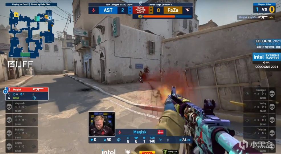 来到长枪局,Astralis调整A区的进攻策略,A大A小齐头并进终于是拿到了赛点,赛点局,Astralis的进攻时间被FaZe极限压缩,Xyp9x和Magisk临危受命,极限时间极限血量拿下了图一。
