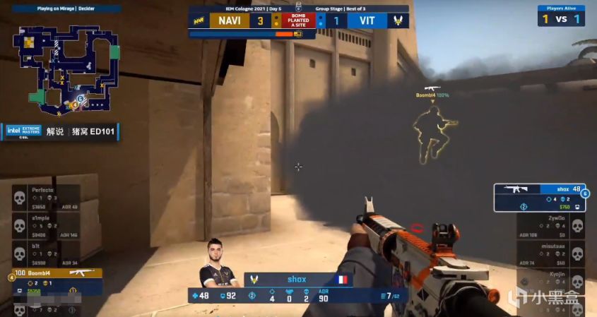 到了第二场比赛,NAVI调整状态和打法,手枪局直接进A区5V5证明硬刚,一举将小蜜蜂所有人都清光,这一操作打出了气势。虽然后面小蜜蜂强起继续进攻,shox埋伏了一手,成功帮助队伍奖励优势。CSBOY看到shox这一操作的时候差点都笑喷了,称这波操作完全就是一波心理博弈。