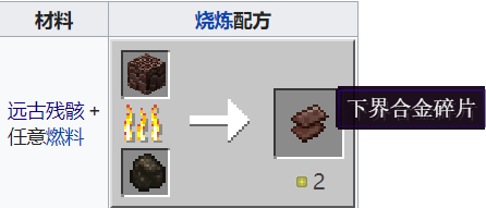 远古残骸、下界合金碎片和下界合金锭在堡垒遗迹中也都有几率找到。