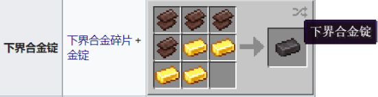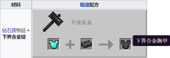 下界合金锭可在锻造台进行钻石装备的锻造升级。