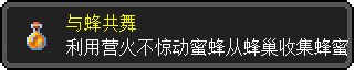 但如果在蜂巢或蜂箱的正下方放置点燃的营火,则在收获时其内的蜜蜂不会与玩家敌对,这时候便获得[与蜂共舞]成就。