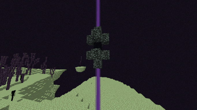 离开末地主岛,通过一格高的远程折跃门,进入末地外岛。