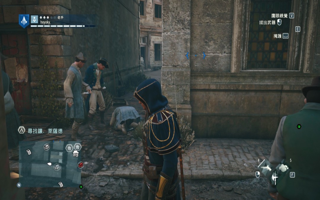 与红色装扮的激进派相比,蓝白装扮的近卫军在游戏中显得平和许多,他们会维持街道秩序,看到拔刀伤人事件时总会主动出击(所以我对他们总是避而不攻)。