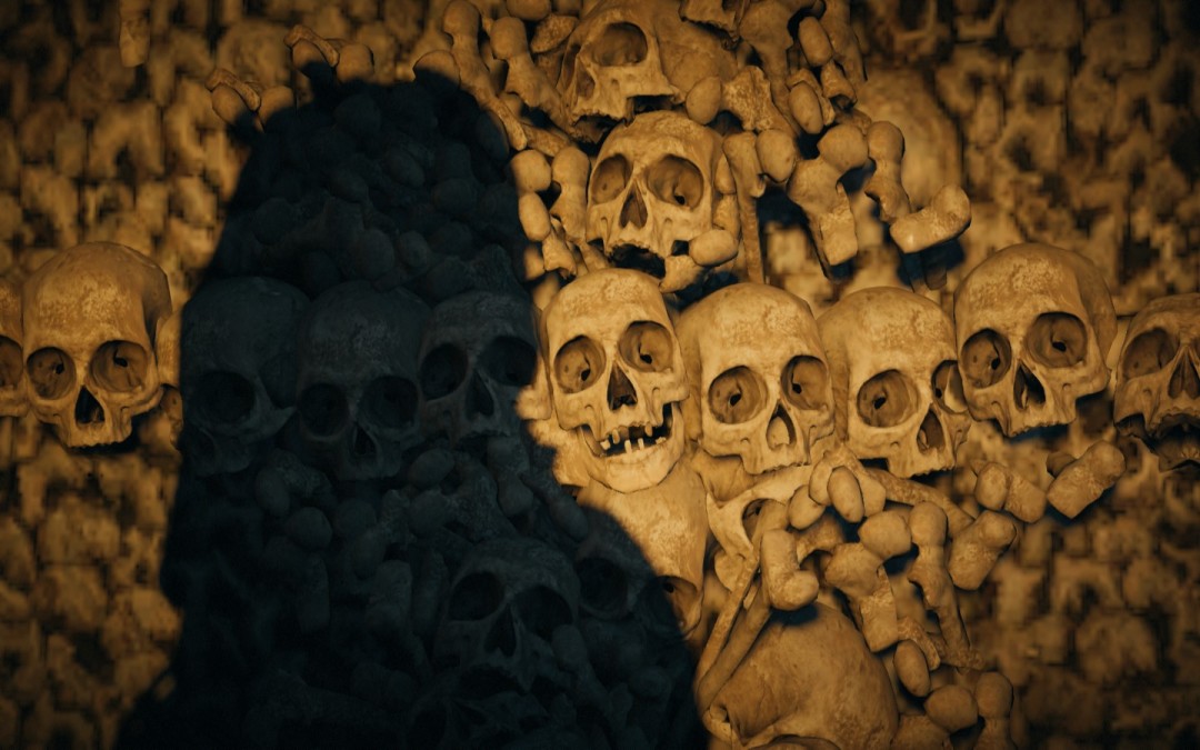 游戏中作为对立阵营的杰曼死后就是被亚诺将头骨埋在了巴黎的地下墓穴中。随着游戏的谢幕,画面顺着地下墓穴通道慢慢的往外延伸,这里所展现的就是巴黎著名的历史景观“巴黎万尸洞”