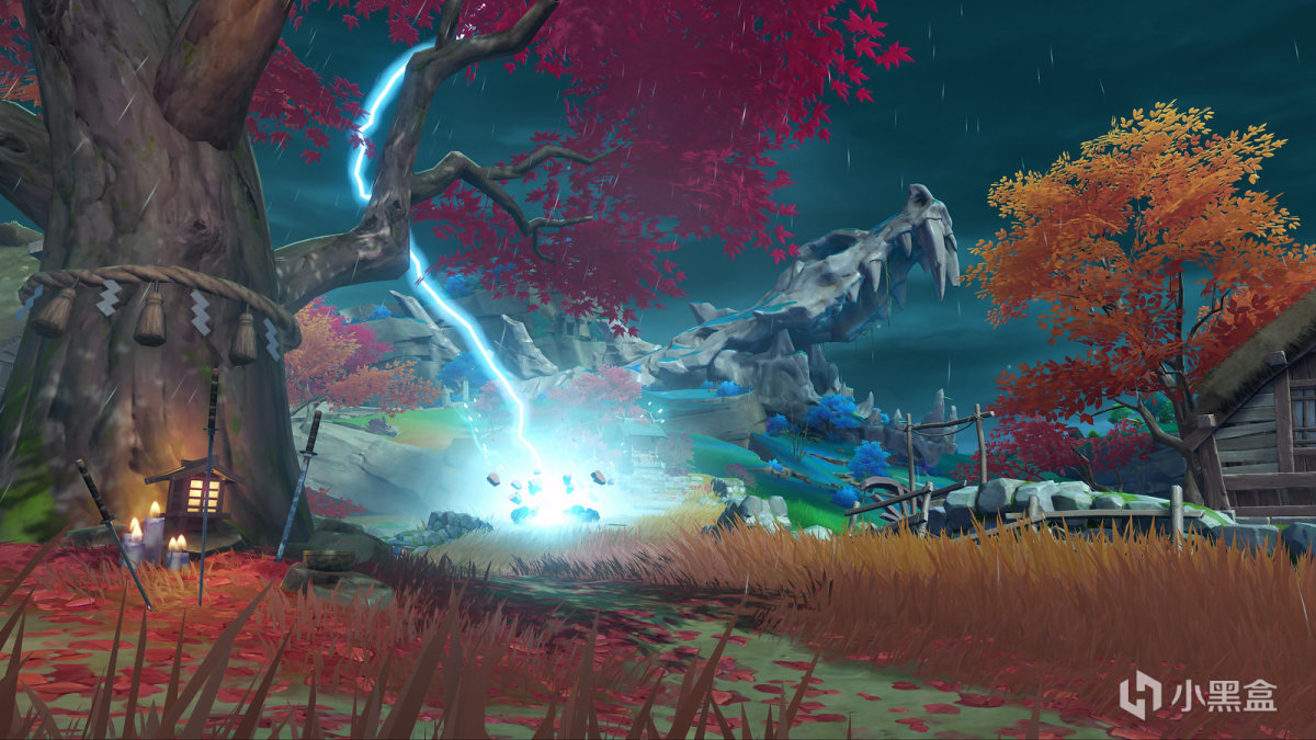与全能的雷神对永恒的追求不同,稻妻是一个处处都可以找到转瞬即逝之美的地方。与蒙德城和璃月的晴天不同,稻妻的天气变化迅速而剧烈,海风吹拂,光影闪烁,眨眼间雷雨肆虐。