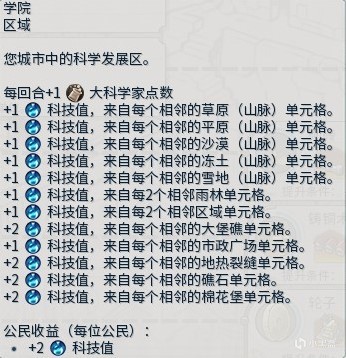 学院:尽量使其邻接山脉。此外注意有没有地热或礁石,凑俩雨林也能提供一点加成。如果都没有的话,尽量使区域都邻接在一起。
