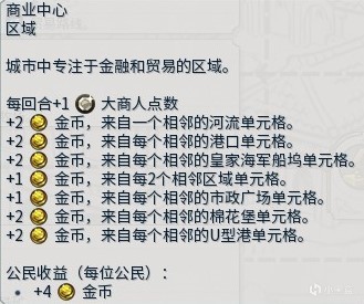 商业中心:商中只要临河就有+2的加成,同时尽量使其与其他区域密铺在一起。
