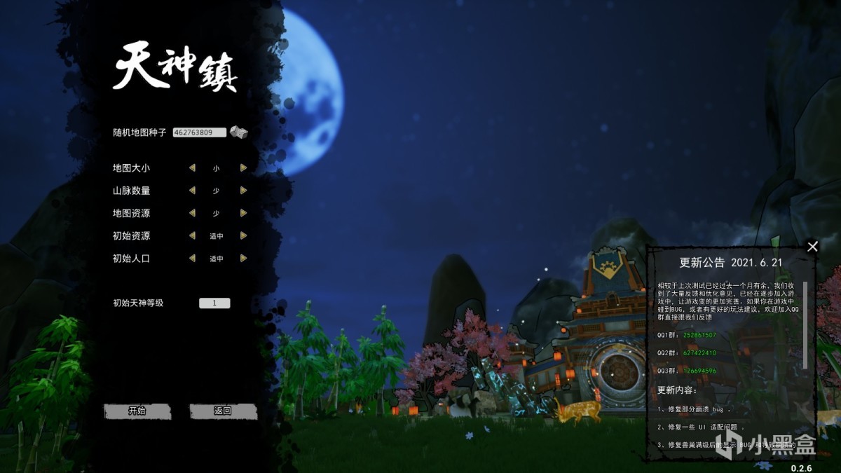 以一款模拟经营建造类游戏的角度来看,《天神镇》做得相当值得玩家为其思考,因为《天神镇》的游玩方式依靠着大量的数值。在游戏开始时,玩家就可以选择当局游戏内的资源量、地图大小、山脉数量以及初始人口,着实有点我以前玩《我的世界》那感觉了。