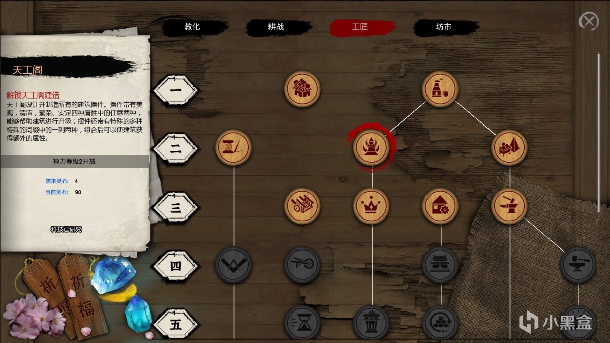 为了迎合神权系统,《天神镇》在游戏中还安排了神力等级,通过越来越多人对神仙的信奉,玩家的神力等级也将随之提升,在提升神力等级后点亮更多科技树,以此来解锁建筑设施。而在游戏后期,玩家更可以通过神力等级的提高和设施的建设,来与更多神仙达成关系,获得他们的神力,再进一步进行开发,以此来达到一个良性循环的目的。