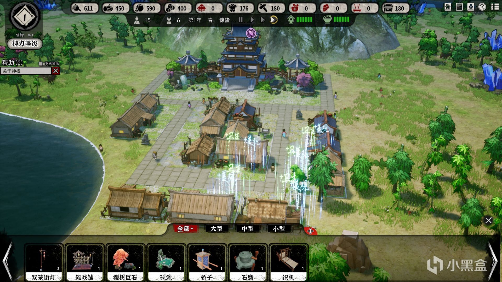 而说到对神仙的信奉,那就不得不提一下游戏中最初的神庙了。在《天神镇》中,制作组对于建筑设施的设计十分优秀,光神庙部分,就由包含亭子、石桌石凳、樱花等多个摆件组成,就如精致的盆景一样值得把玩。