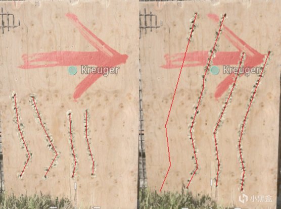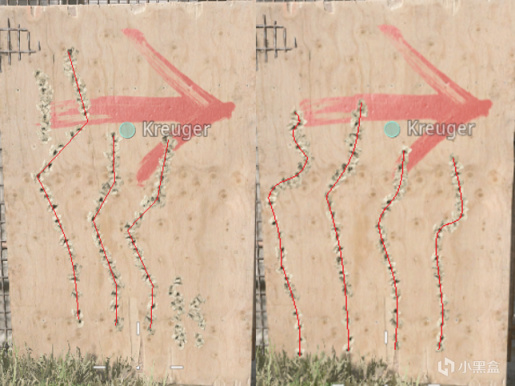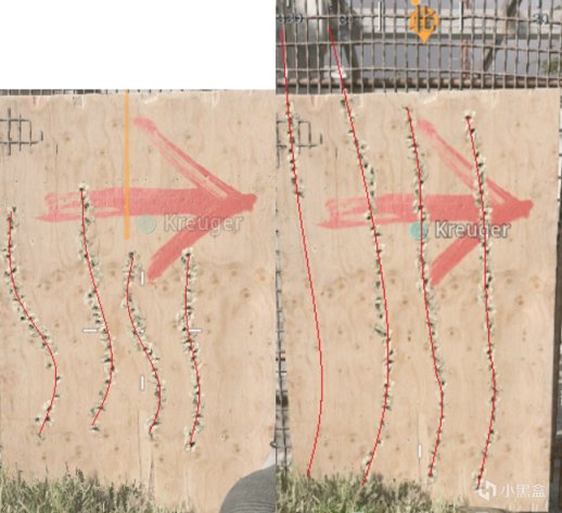 每半张图中左侧两条为无配件弹痕,右侧两条为满配弹痕;