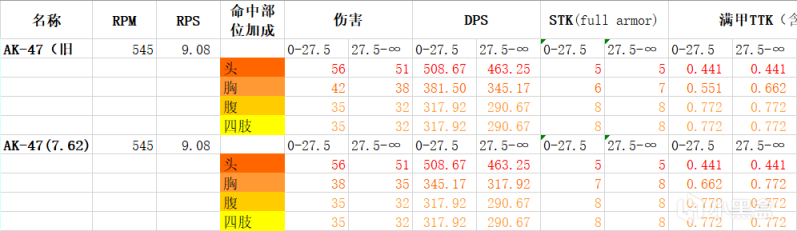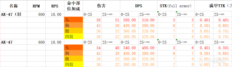 假设胸部伤害的确没变的话,那这就是为数不多的胸部DPS突破了400的枪,介于其他枪都或多或少被削弱了,可能冷战AK就会位列第一了。