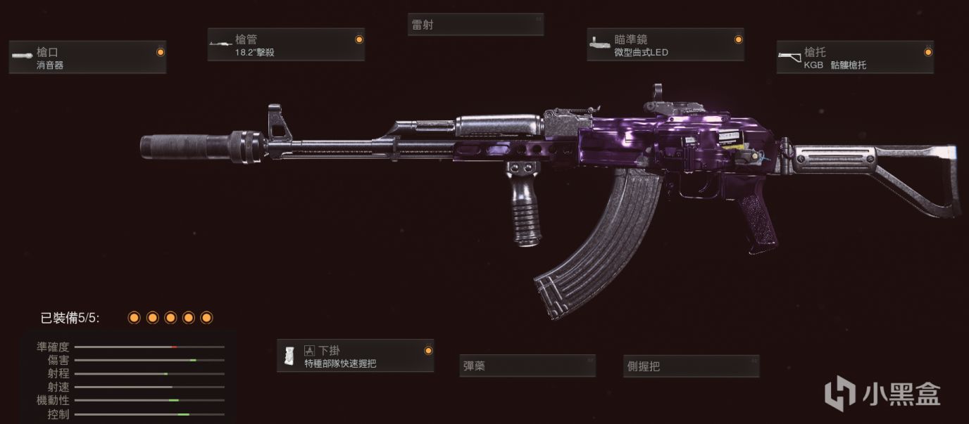跑射低于冲锋枪平均水平,太差了,普通消+无托基本必带。枪管拉射程和开镜移速,握把加控制和冲刺。