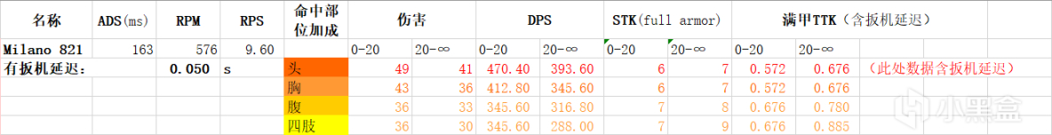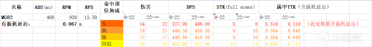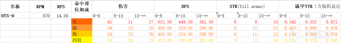 优点:不是很吃射程,大多数情况下ttk都是730ms的水平。机瞄视野优异。爆头收益高,命中一枪头即可减少一枪STK。
