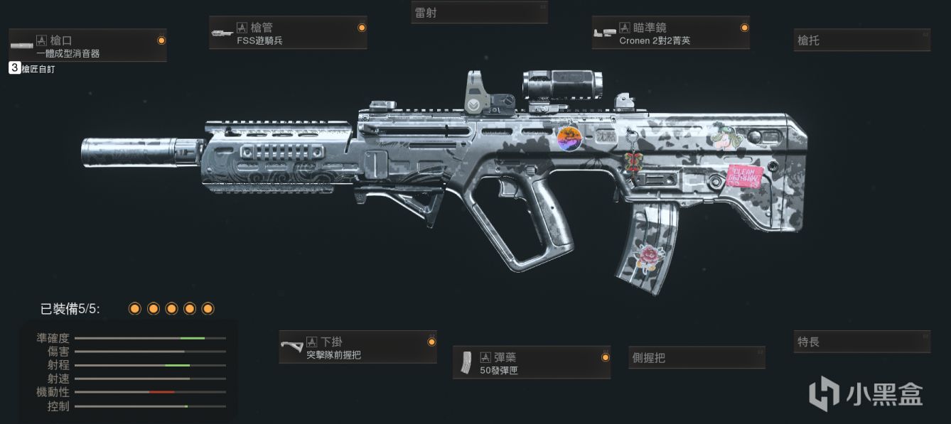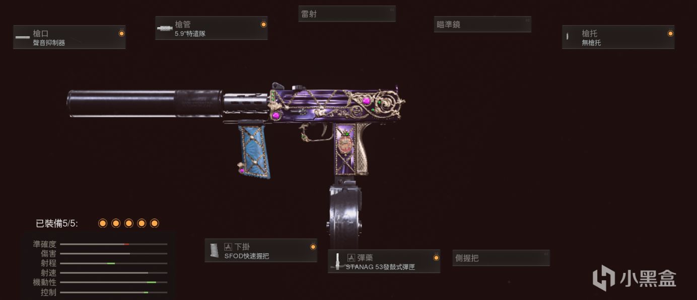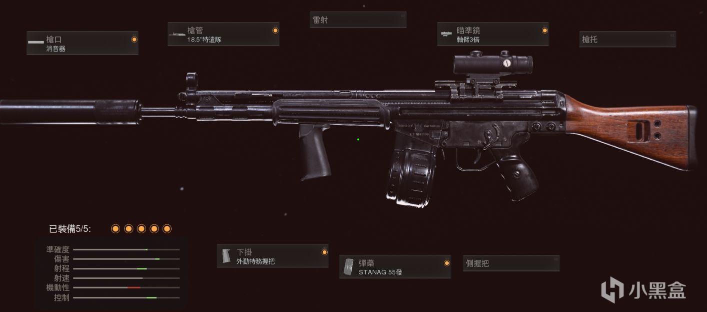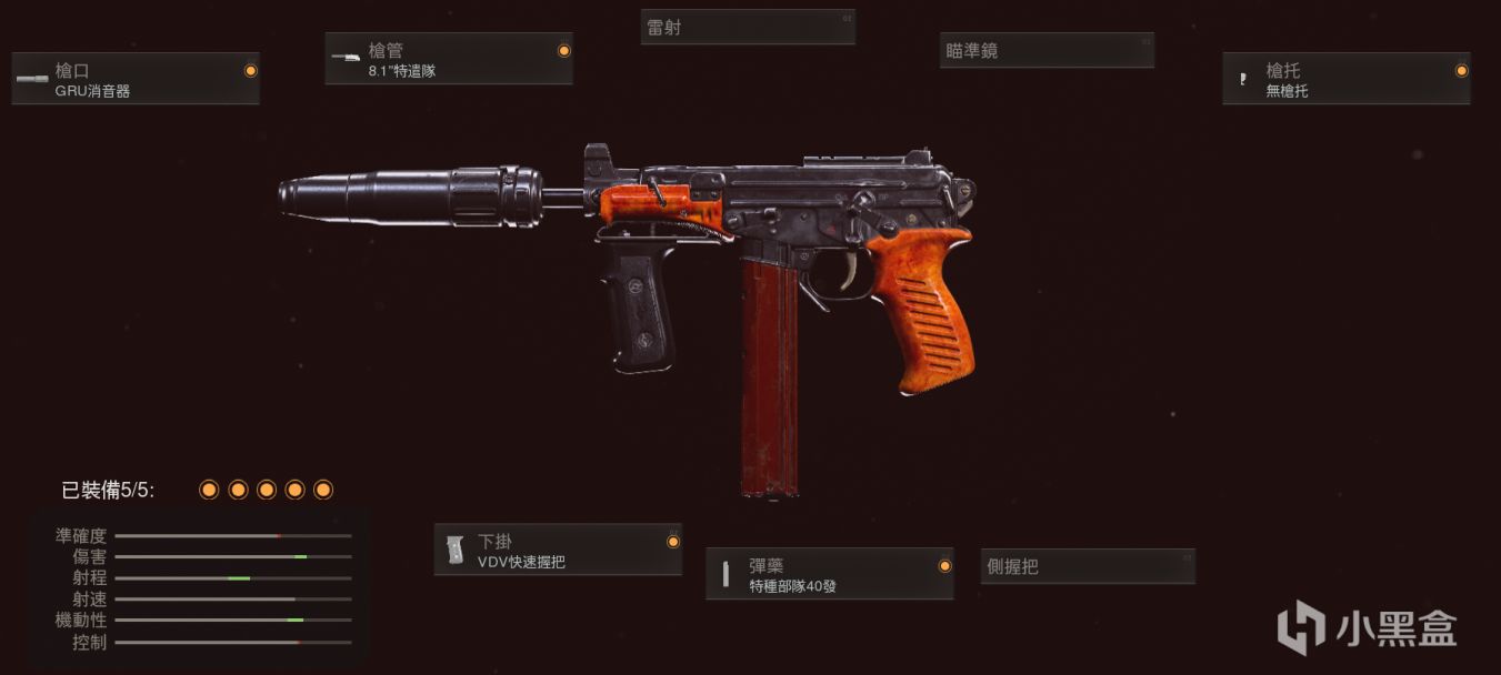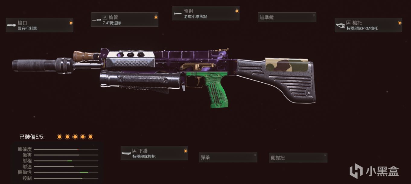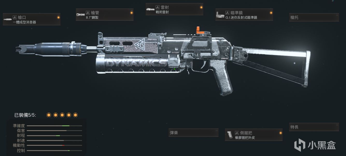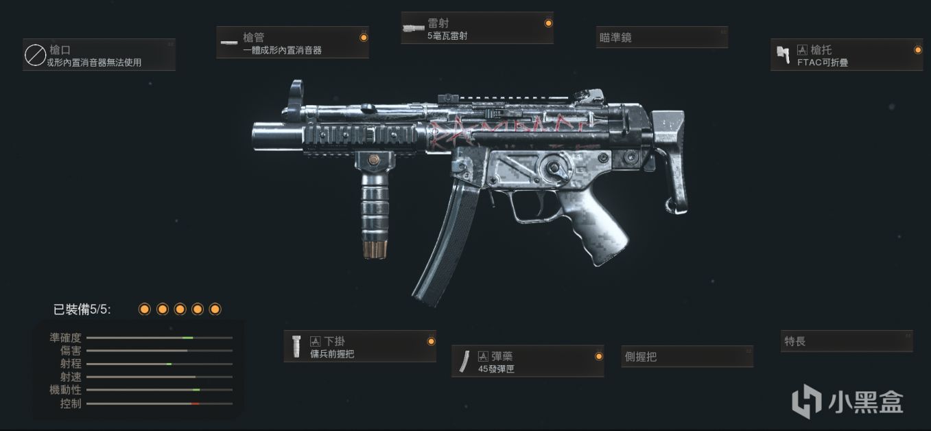 开放式机瞄直接用,射程靠特务消,其他配件基本都是为了拉机动性,毕竟MP5的机动性不算特别出色