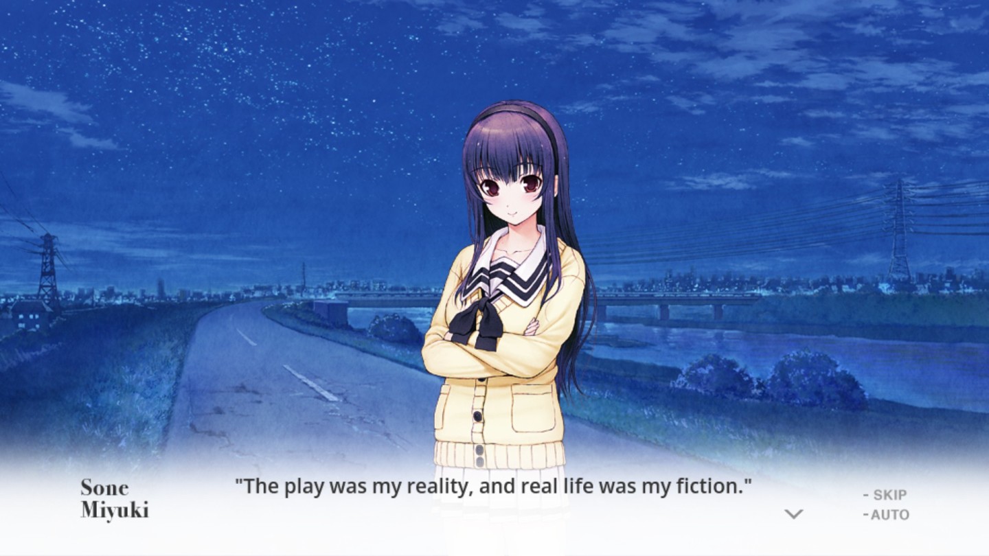 我们注意到,《心跳文学部》中Monika是文学部长,《君与彼女与彼女之恋》里的Miyuki是话剧社女演员,她们都擅长在虚构中发现现实。这一虚构创作者的身份,既是她们日后面对整个世界的虚构性时能自我认同的重要理由,也在帮助玩家理解这么一个事实:虚构与现实之间不存在比较级。“囚禁”作为一个隐喻,其原型正是元叙事的“嵌套”,强调收缩的元游戏把牢笼放在游戏内,注重扩张的元游戏则将之置于游戏外玩家所处的现实。嵌套的漩涡中天然有对存在着的主体的自指,玩家不能不去设想,自己控制的分身且被囚于屏幕内,房间里点击鼠标的自己又何如?当然,收缩运动的核心仍是对故事本身意味的讨论,至于现实的存在性问题,则在元叙事的另一种运动中得以呈现。
