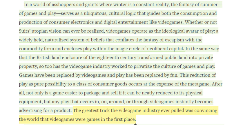 图6:有趣的是,电子游戏的诞生本身就是一段元叙事:“The greatest trick the videogame industry ever pulled was convincingthe world that videogames were games in the first place.”(Metagaming, 2017)