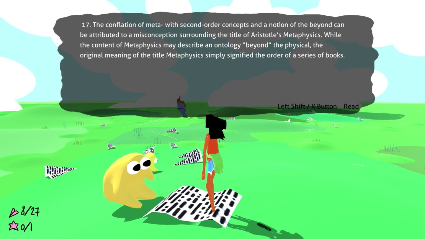 图8:为使读者直观理解Metagaming,两位作者为该书量身制作了游戏《Footnotes》(2018),借关卡的设置来说明书中要点。这可以算元游戏,因它有组织地运用元叙事(每一关都有自指的交互语言的示范)传达了一个系统的主题(游戏里收集的脚注解释了书中的论点)