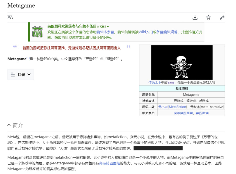 图7:在中文ACGN圈内知名的wiki站点萌娘百科上,Metagame页面的注解也颇有争议