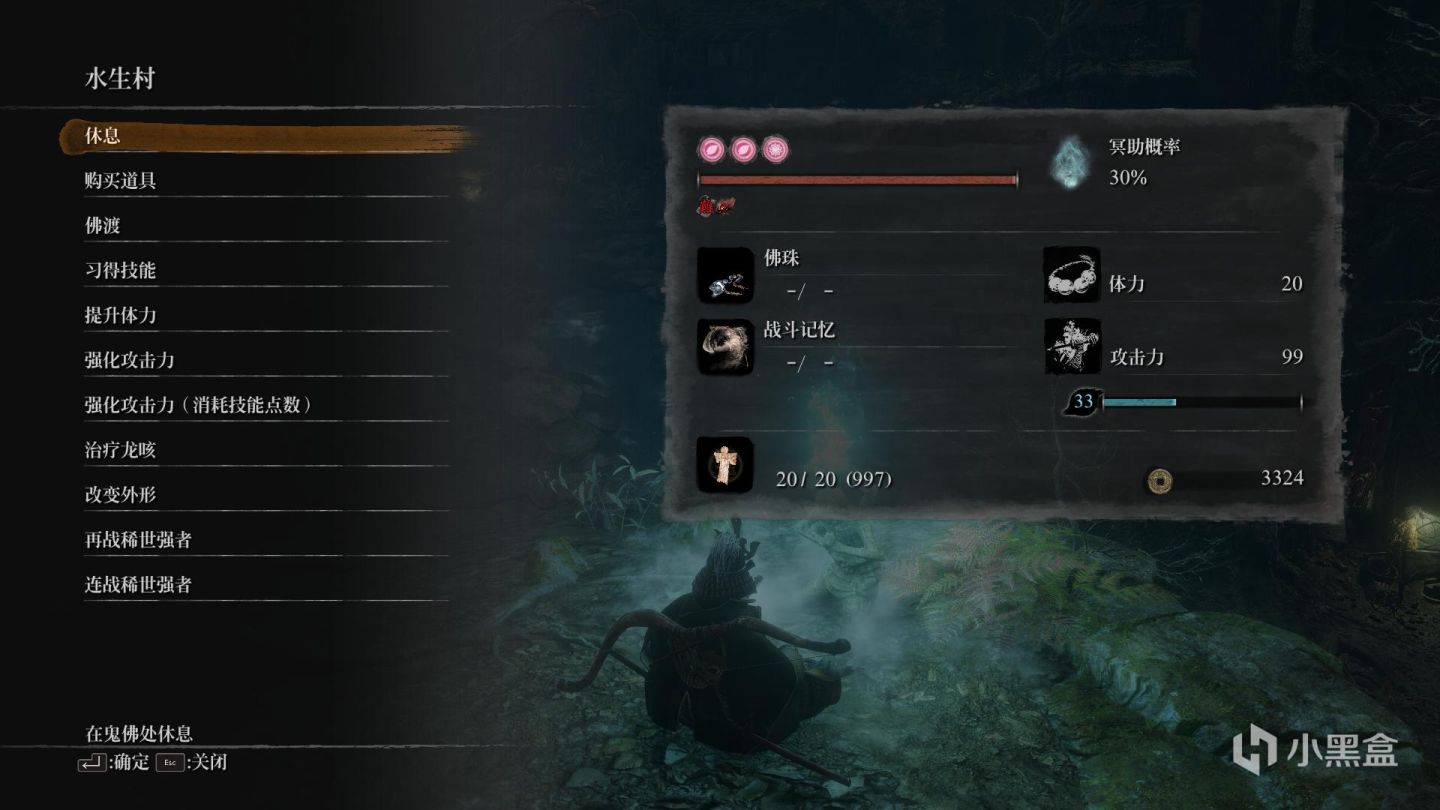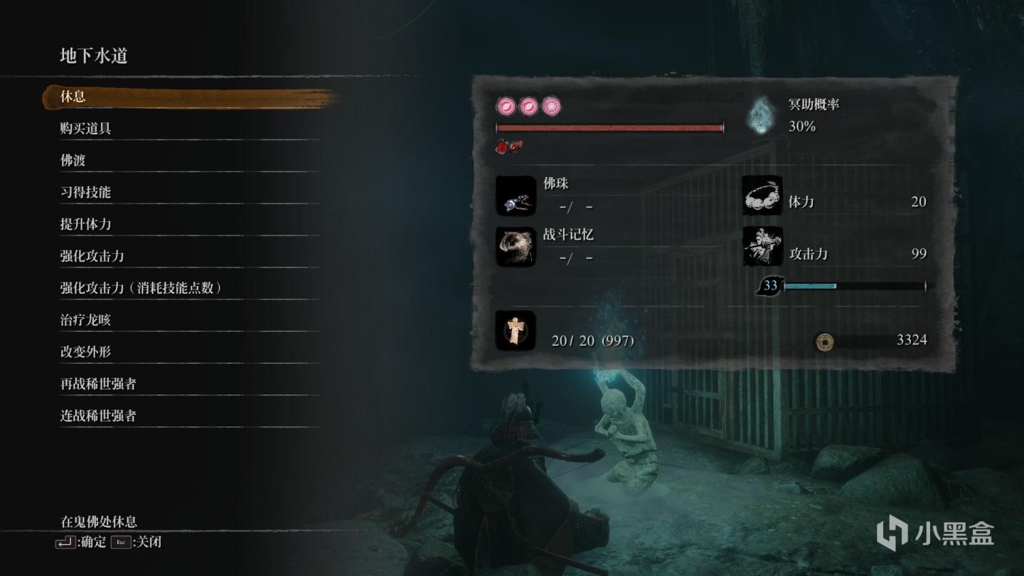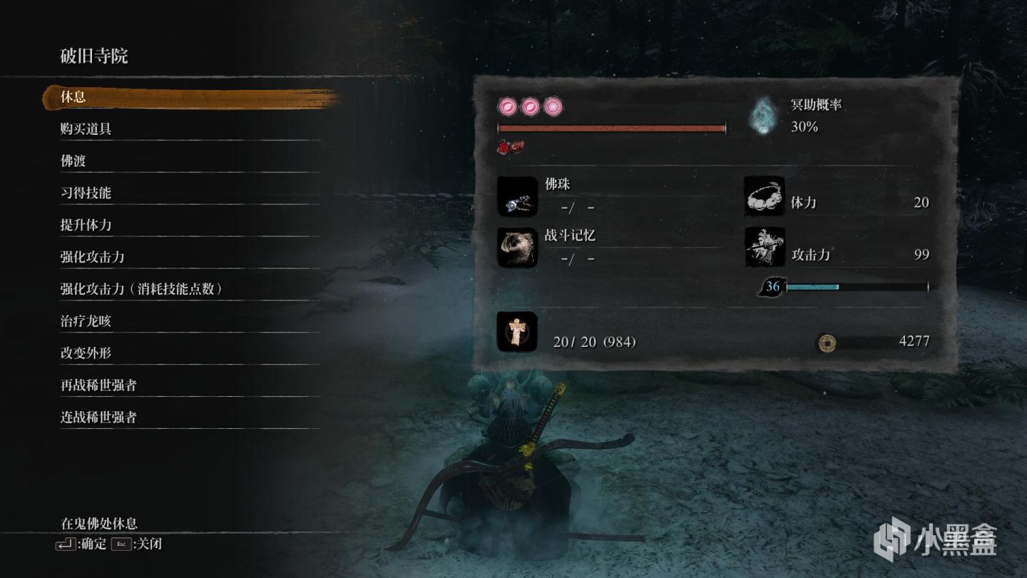 第一次完全死亡后(无法回生),我们会被传送到怕破旧寺院触发一段cg