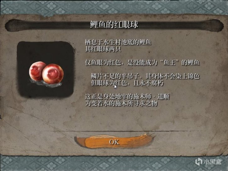 获得任务道具:鲤鱼的红眼球