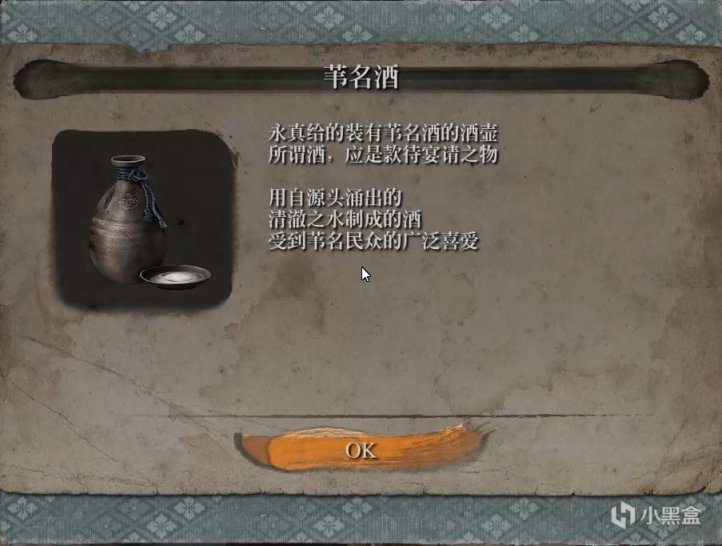 回去找永真交谈,她会说为了恭喜佛雕师痊愈,给我们一瓶苇名酒,让我们给佛雕师喝
