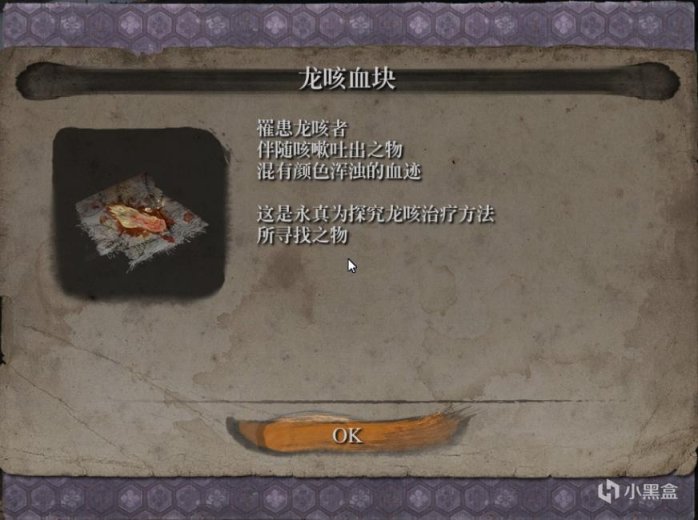 再找另一个龙咳的NPC,取得血块。(我们这里找的是老婆婆,其他的都可以,只要得了龙咳的)