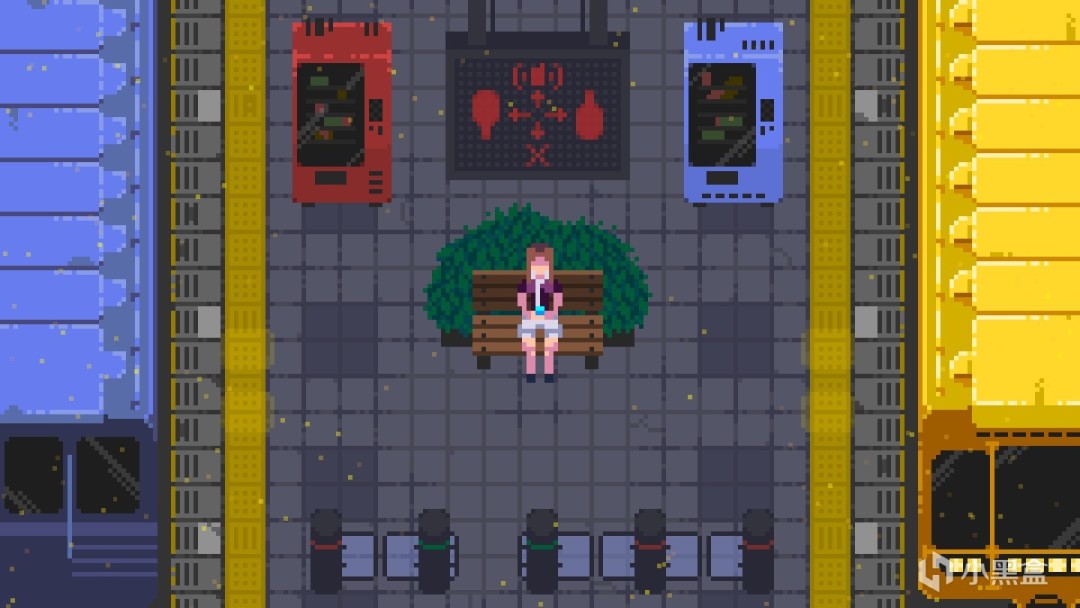 游戏的开始界面,主人公坐在长椅上,旁边是停靠的列车