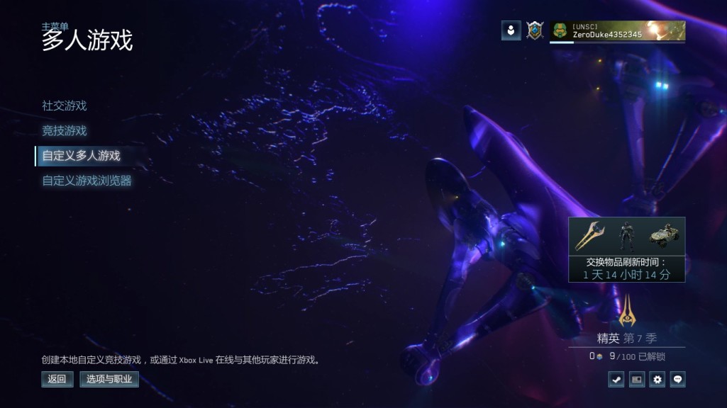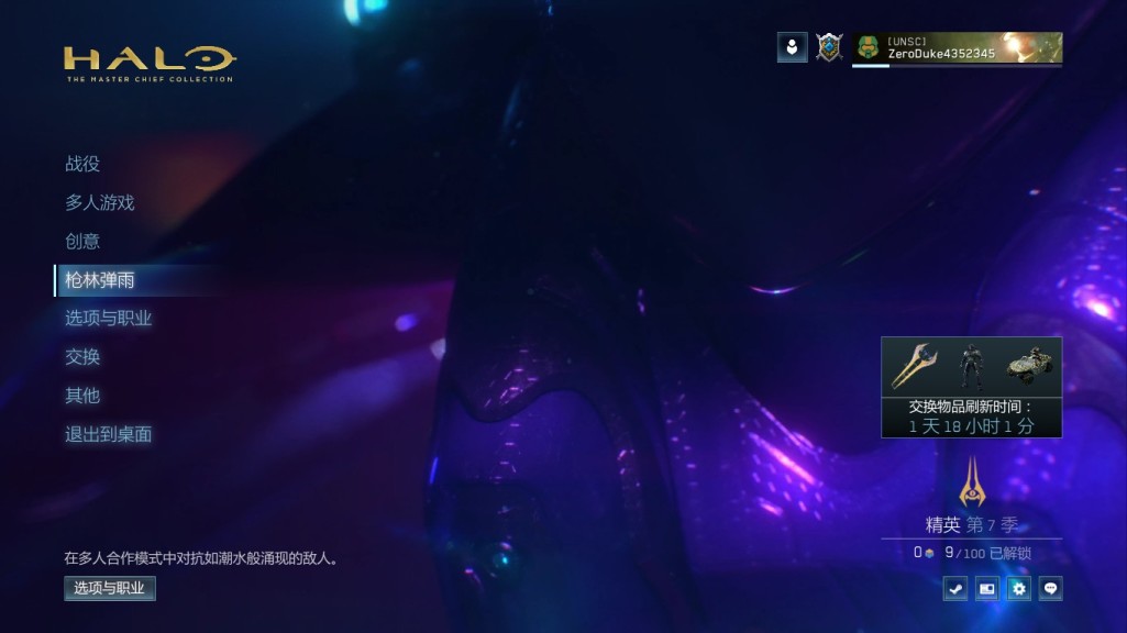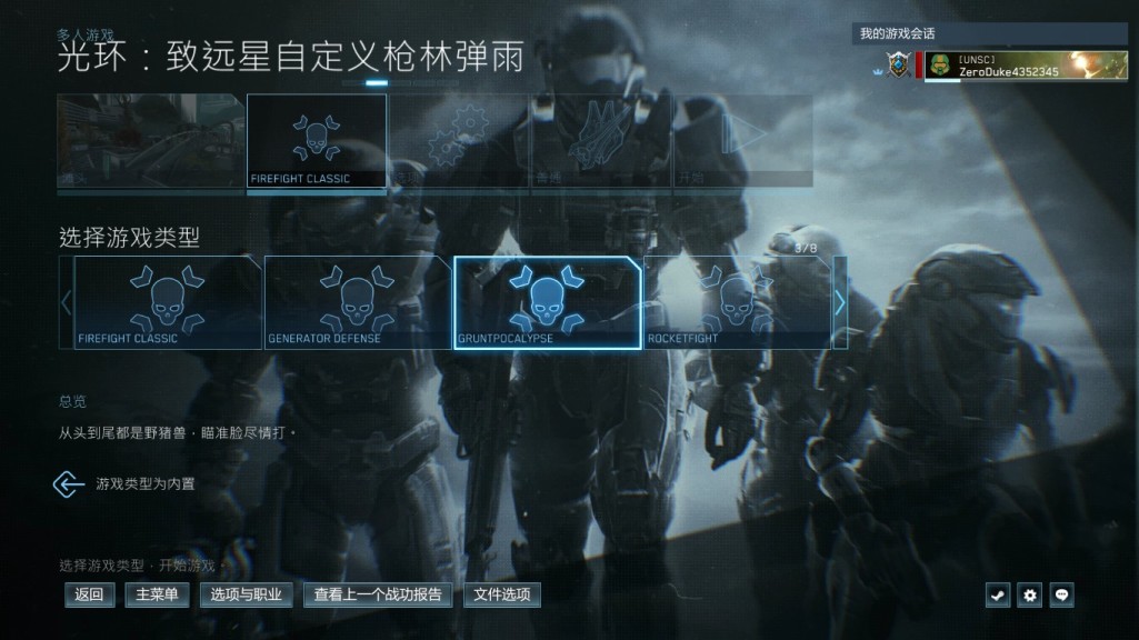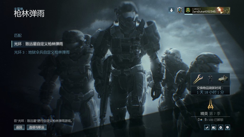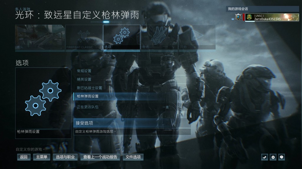 1:进入主菜单,选择枪林弹雨,自定义枪林弹雨光环致远星,选择地图任意,难度任意,进入游戏。