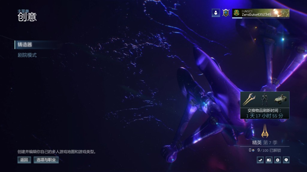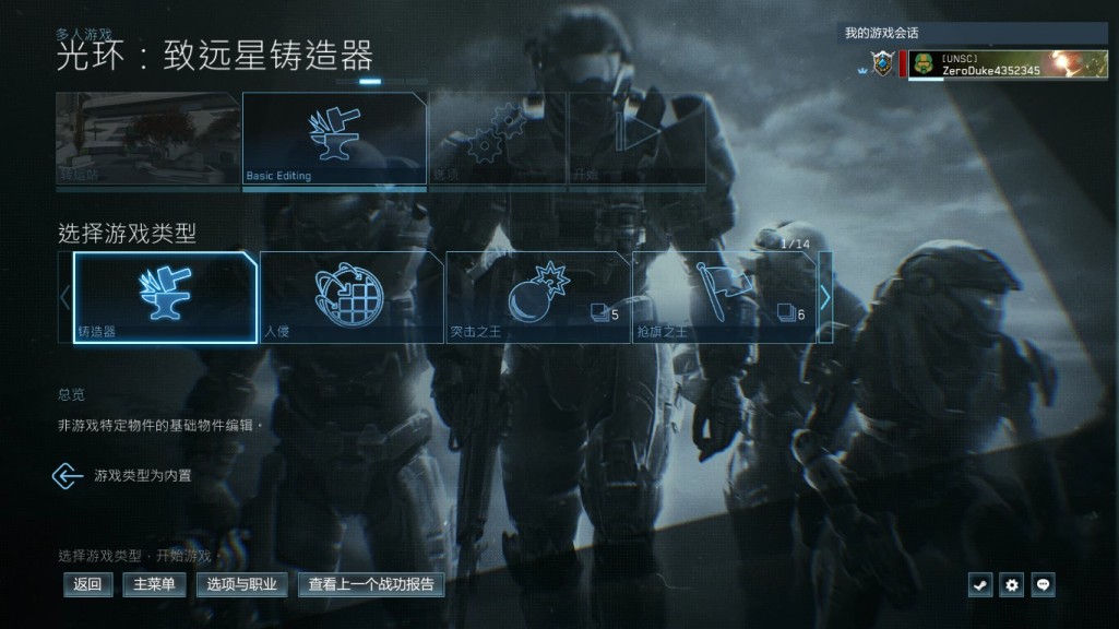1:进入主菜单,选择创意,铸造器,选择光环:致远星,地图任意,玩法铸造器,进入游戏。