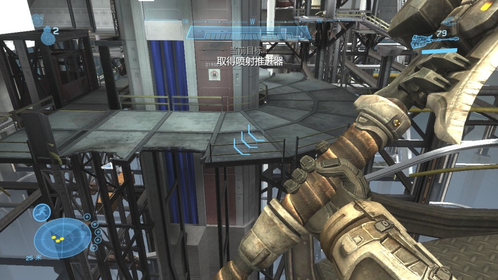 3:继续任务到了电梯上层,你会需要喷射推进器的哪里,但这里你要是用了你成就就达不成了,所以看好下边的操作。