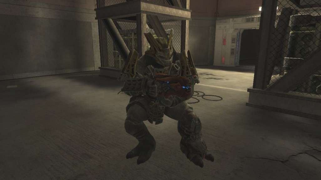 2:按照剧情流程,到电梯下边,会触发两拨敌人来,两个鬼面酋长还有手下的进攻,杀了他们,拿走重力锤,一会要用,关键武器