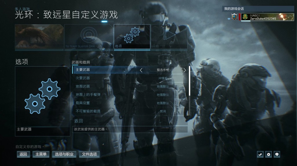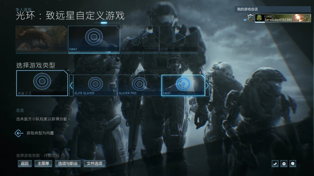 1:进入主菜单,选择多人游戏,自定义多人游戏,光环致远星,选择地图任意,难度任意,拉小伙伴进入组队,武器设定狙击步枪,或者直接玩法调成SWAT(也就是特警模式)进入游戏。