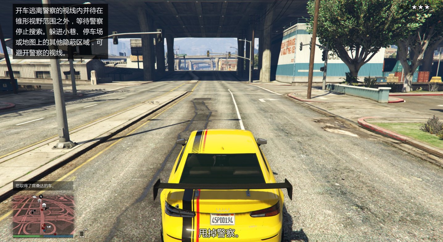 把被扣押的车辆从警察局取出后,可以直接找MK2消除警星,再驾驶车辆回改装铺(自杀、莱斯特在本次任务中无效)