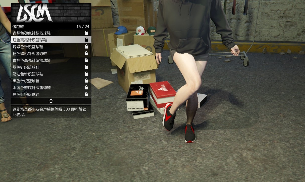 提供的鞋子都是需要个人的车友会等级到达指定位置,才能解锁(例如图中这双,需要三百级才能解锁的篮球鞋)