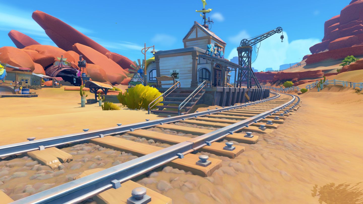问:那么我们再聊聊沙石镇中的西部风光设计本身吧,蛮荒苍茫的沙石镇必然和草鲜水美的波西亚在难度上有明显的差异,比如游戏第六天左右民兵团的彭虎就会送给玩家一个防沙帽以对抗来到沙石镇的第一次沙尘暴,沙暴结束后也需要用鸡毛掸清理仪器和设备。还有在流沙中钓鱼、随处可见的风滚草,还有沙漠“大镖客”洛根骑马追火车等经典桥段的出现。很大程度上大家都将自己的西部侠客精神和拓荒幻想寄托在游戏中,当然更多的还是想请制作者来讲讲游戏一开始立项的想法——关于作品调性和设计风格。