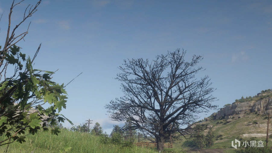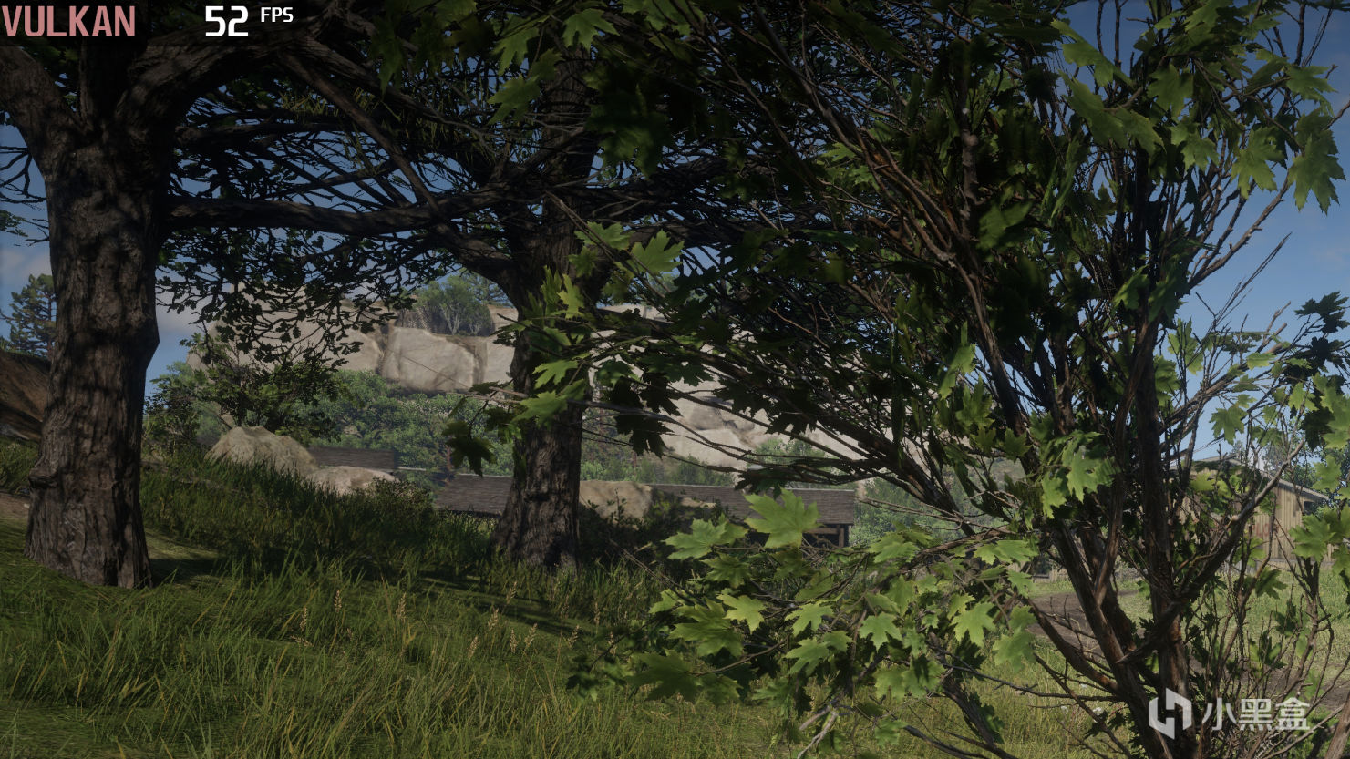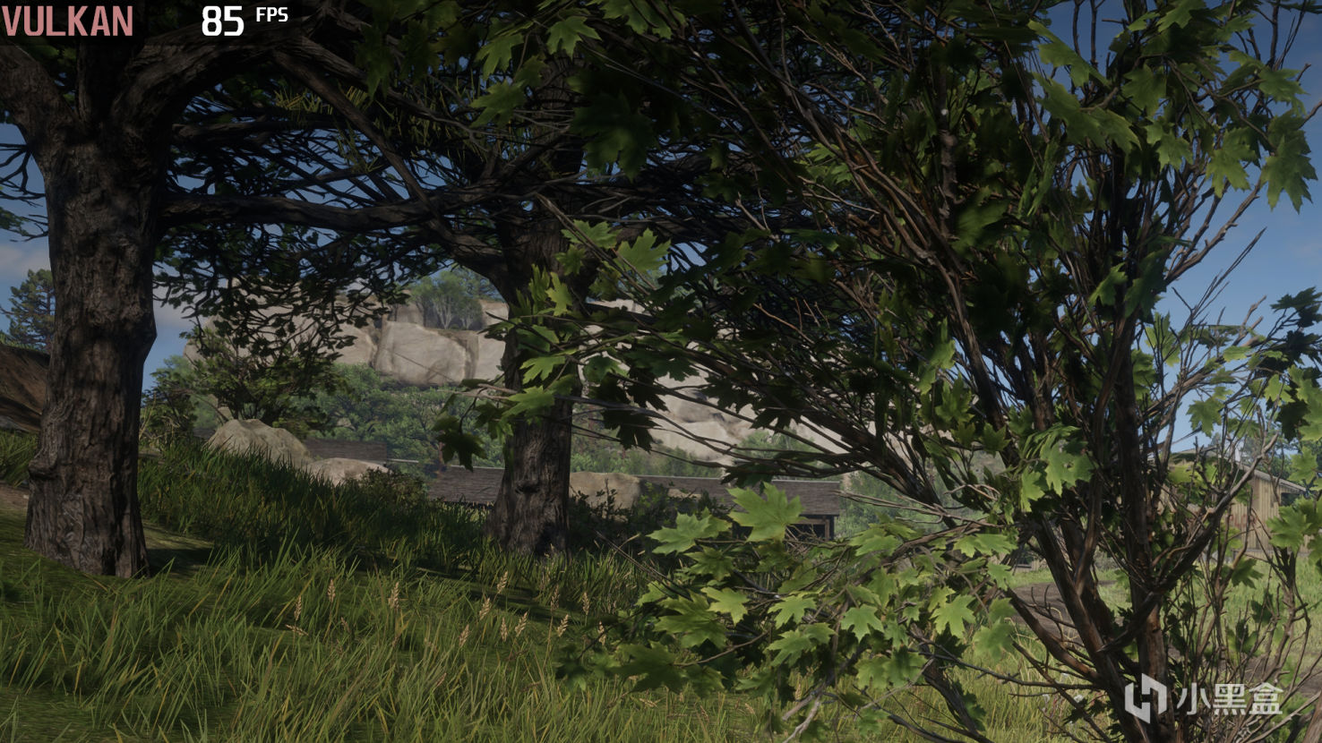 《荒野大镖客2》开满预设注重质量之后,画面效果其实不错的,但唯一诟病的是TAA抗锯齿在某些部分处理过于模糊,即便是开到TAA中等也是如此,尤其是树叶很明显的玩过都知道,而DLSS的加入完美地弥补了这一方面,无论是DLSS质量还是性能模式,都是变得更清晰了,几乎和MSAA这种多重采样抗锯齿是没区别的,并且避免了MSAA闪烁的可能性(DLSS 2.2修复了很多画面BUG),帧数方面提升大家可以对比一下就不多描述了。
