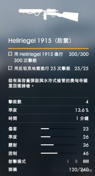 当你升级之后你一定会拿到战争债券,这个东西就是用来解锁枪械的。在战地1里面有些枪械是可以直接拿战争债券解锁,有些需要完成任务才可以解锁。当我们把鼠标移到想要解锁的武器上面便可以看到解锁需要的条件和进度:
