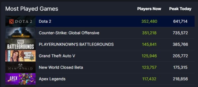 本作在线人数目前已经冲到了12万,超过了《Apex英雄》跻身在线人数榜的第5名。