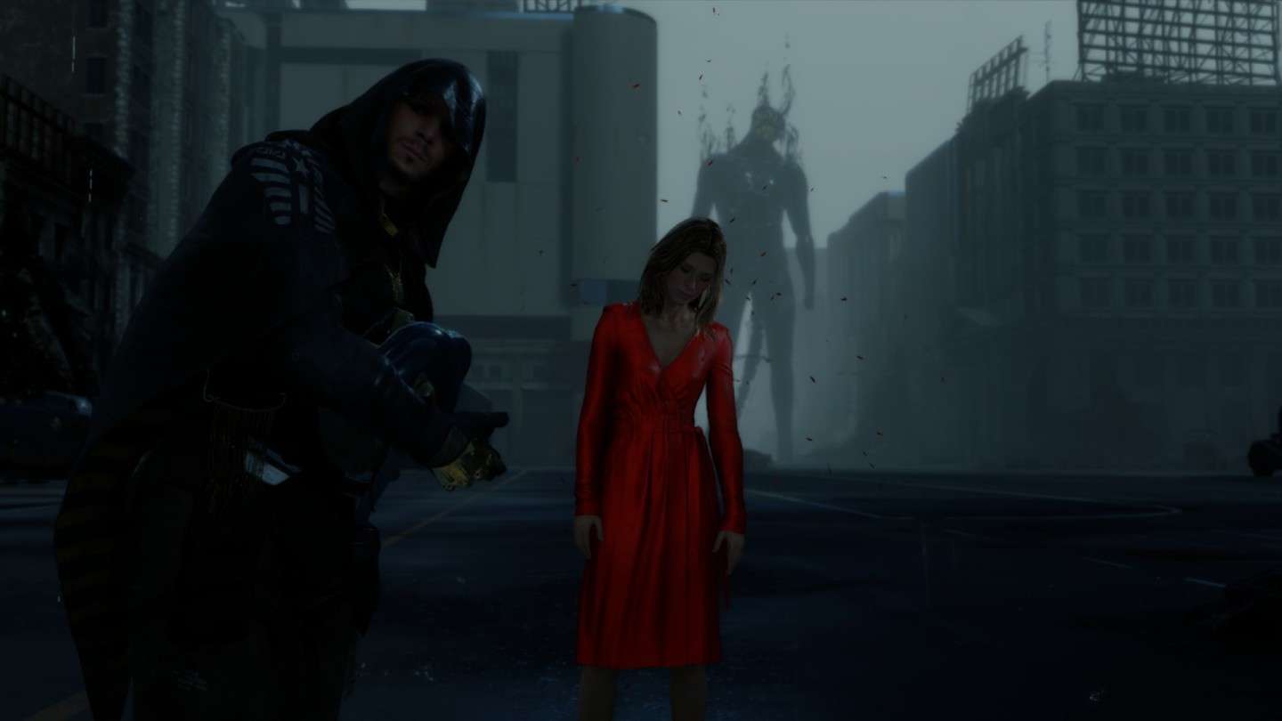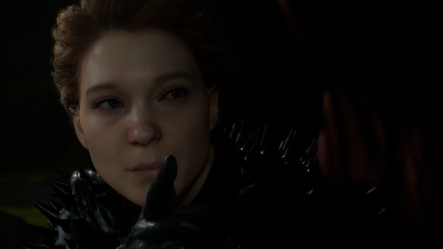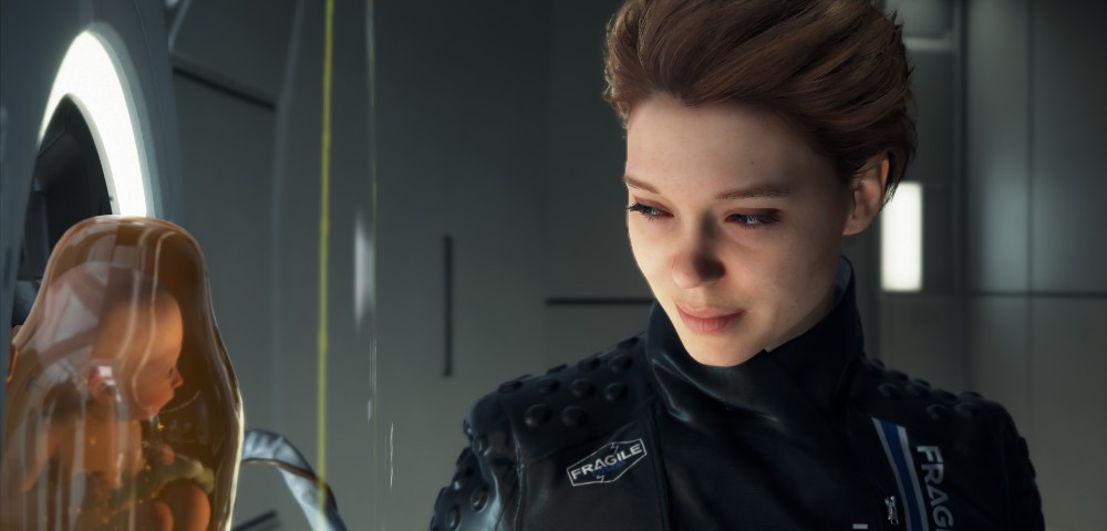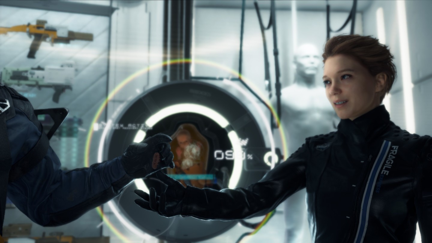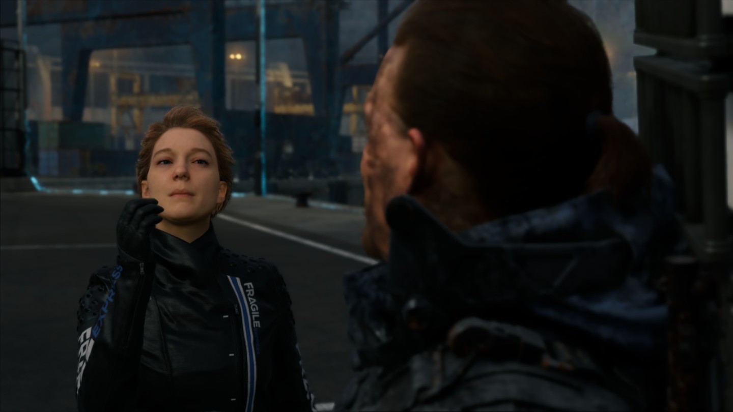 这个能够闪现还密密实实地包裹住全身的女子,在游戏初期很让人感觉神秘,Sam来到山洞里躲雨,恰遇到这个女子,神秘女子自称Fragile,Fragile在英语有“脆弱的”的意思,作形容词,巧合的是,国外的快递如果里面是易碎品,就会在快递上标识“Fragile”来提醒。“易碎”的意蕴,和人物本身的情节也相当契合,这或许也是制作人小岛有意而为之不过后面会提到,这里暂不拉开说。
