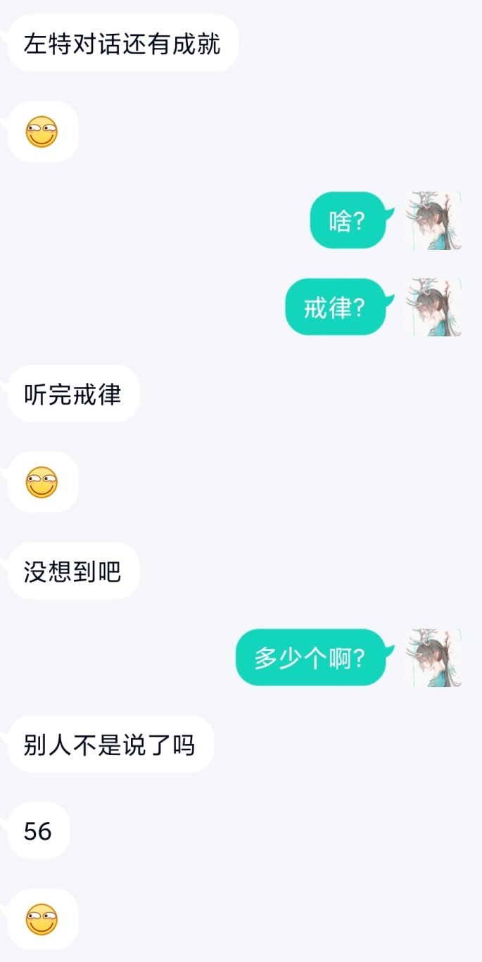 噢,对了,一提到左特,我就想起来了,我基友跟我说听完左特的戒律有成就,五十多条戒律,要一条一条按,我按到五十多条的时候,然后又跳回第一条了,成就还是没跳出来,我第一反应是莫非要听两遍,制作组能有这么无聊吗?