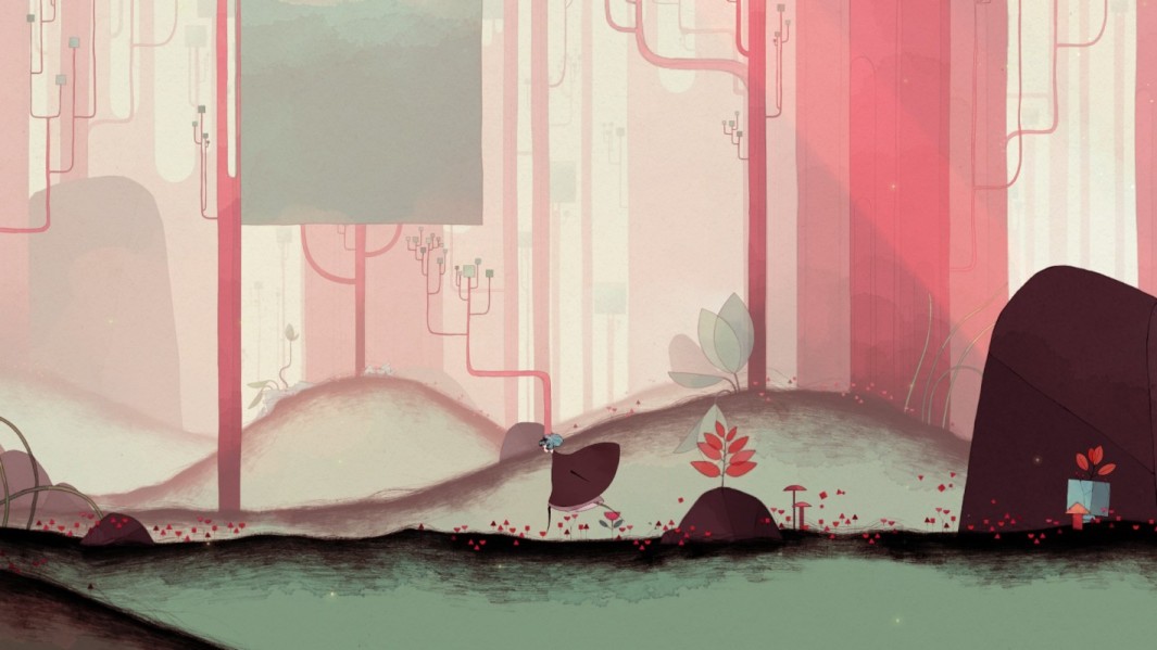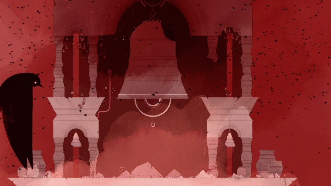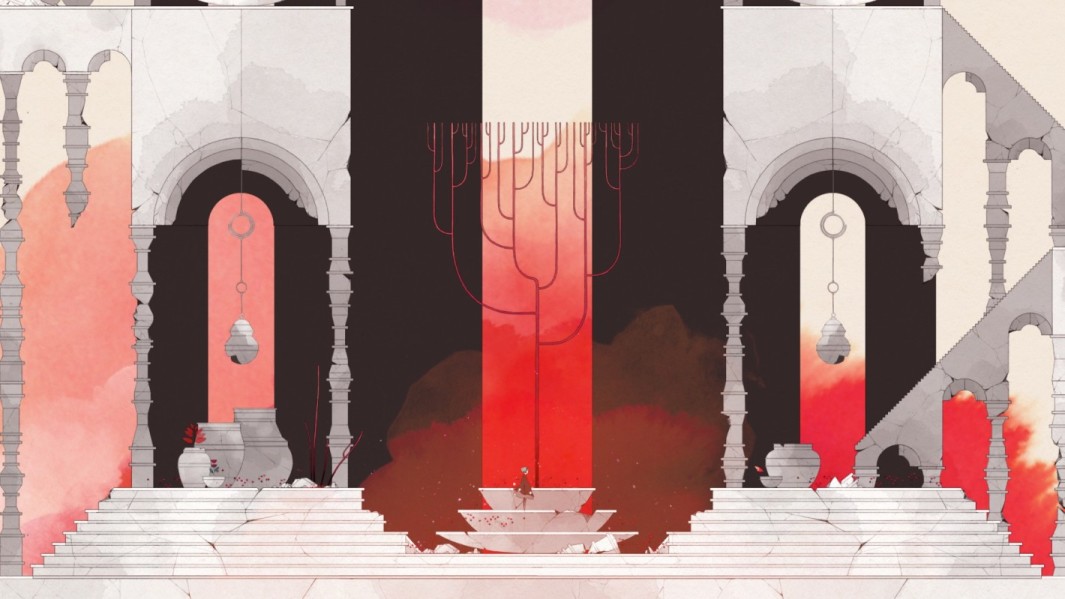 上图显示出危险的红色,配乐也变得紧张,这张截图同样来自于绿色为主的第二章节。怒吼的飞鸟可能暗示了Gris的愤怒情绪。研究者和心理健康专家认为,“愤怒”是悲伤阶段的重要组成部分,应当被鼓励。当对象确确实实感受到自己的愤怒时,“愤怒”阶段往往会较快地结束。愤怒情绪是人的自然反应,一味压抑适得其反。尽管我们经常被要求,或者说被教育在对待他人和他物时控制愤怒情绪,但在悲伤阶段中,“愤怒”可以理解为是连接对象与必须接受之现实的一根粗麻绳。即使是导向他人的愤怒也会帮助对象重新拉回现实,并重建与他人的关系。